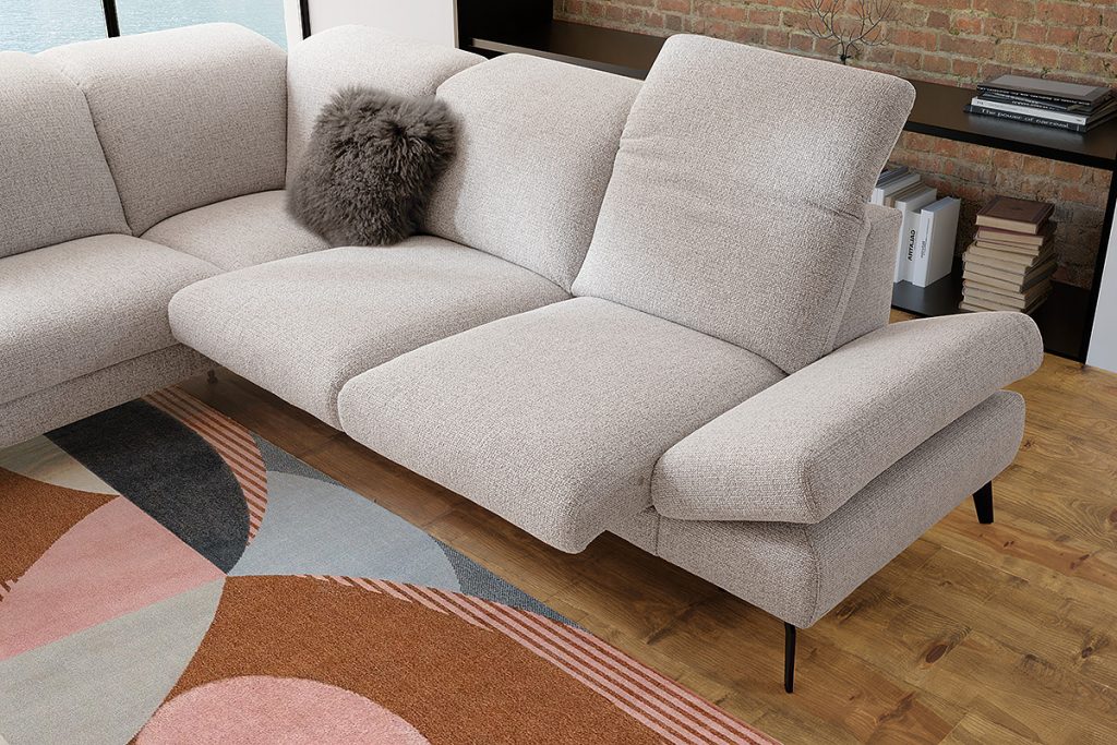 Optional kann der Longchair mit einer motorischen Relax-Funktion ausgestattet werden. Hierbei gleitet der Sitz um ca. 19 cm nach vorne und der Rücken neigt sich gleichzeitig. Die Kopfteilverstellung ist ebenfalls elektrisch stufenlos einstellbar.