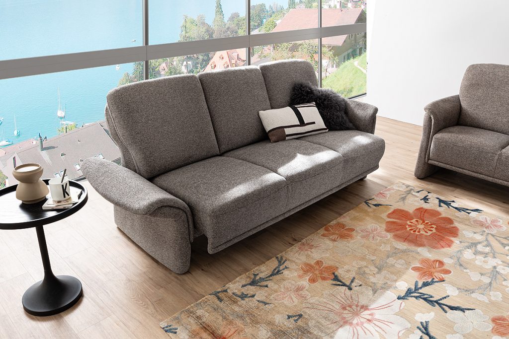 Die normale Sitztiefe wird durch den manuellen oder motorischen Sitzvorzug (SVZ) um weitere 13 cm auf eine Liegebreite von ca. 61 bzw. 65 cm vergrößert. Erhältlich ist der SVZ bei freistehenden Sofas und bei etlichen Anbauelementen gegen einen geringen Mehrpreis.
