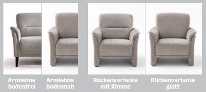 2 Rückenoptiken und 2 Armlehnen zur Auswahl